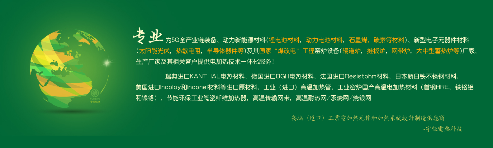 ??????公司專業(yè)生產(chǎn)各種精密電熱(電阻)合金、負載合金、各種電子陶瓷熱處理電熱元件、工業(yè)窯爐網(wǎng)帶及工業(yè)電加熱管。并代理和銷售瑞典進口康泰爾電熱合金材料,日本新日鐵進口不銹鋼材料,美國進口Incoloy和Inconel材料等進口合金產(chǎn)品。產(chǎn)品被運用在5G產(chǎn)業(yè)鏈裝備、鋰電池正負極材料行業(yè)、"煤改電"行業(yè)、碳纖維行業(yè)、陶瓷電子專用設(shè)備、粉體材料、海綿鈦和釩鈦產(chǎn)業(yè)等領(lǐng)域。[詳情見宇恒產(chǎn)品]